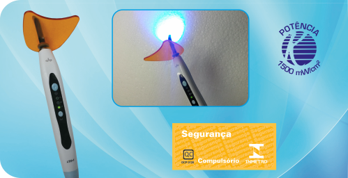 Fotopolimerizador a Led com fio indicado para fotopolimerização de resinas compostas ou qualquer substância sensível à faixa de luz no espectro de 440nm à 480nm aproximadamente. Emite luz fria (azul) através de caneta portátil. Leve, de fácil assepsia e manuseio. Possui 3 modos de operação (rápida, gradual e pul-sante). Garantia: 12 meses. |